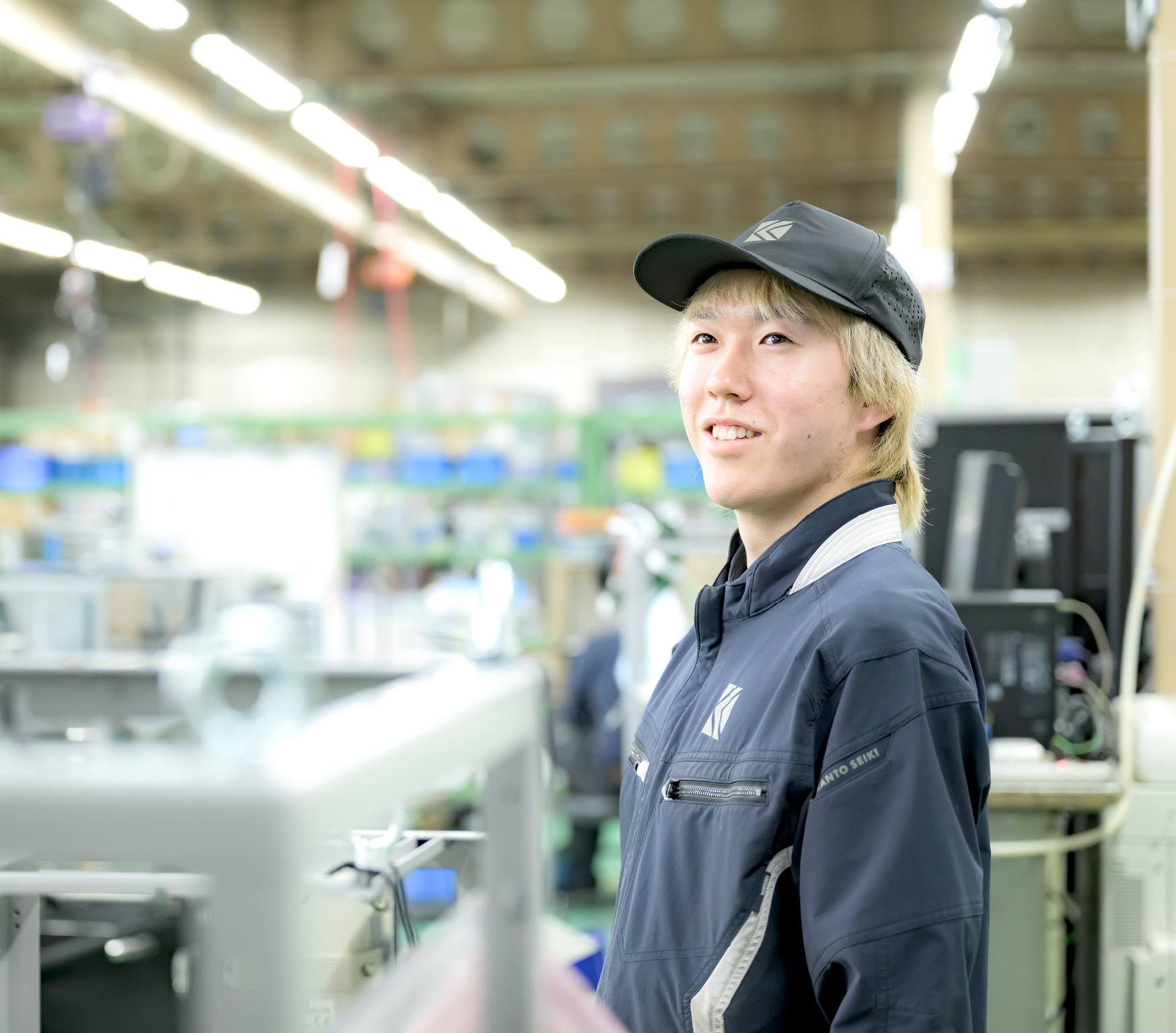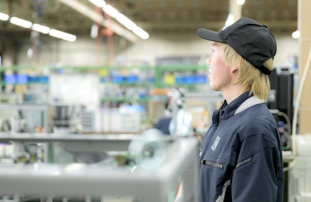 働く社員に優しい企業文化がある会社だと感じています。”例えば「えびちゃんのおごり自販機」は、社員2人で専用カードをかざすと好きな飲料が週に2本もらえる仕組みです。”休憩時間に「一緒に行こう」と誘い合うことで自然と会話が生まれ、仲間との交流を楽しみながらリフレッシュの時間も共有できる。そんな遊び心のある優しさが、関東精機らしい魅力です。