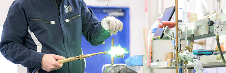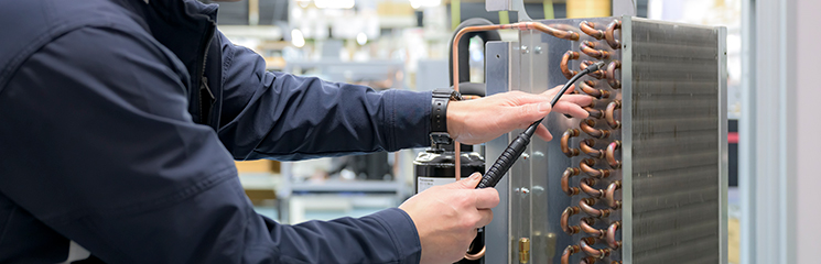 冷媒が循環する銅製パイプをロウ付けで主要部品間に取り付ける。作業には、ロウ付け技能者の資格と経験が必要になる。ロウ付けの仕上がり状態には厳格な基準が定められている。