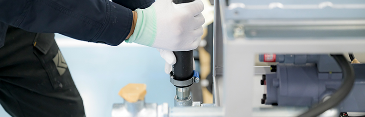 工作機械や各種産業機械といった冷却対象へ送出する冷却液(油・クーラント・水)の回路となる冷却器、ヒーター、クーラントポンプなどのユニットを取り付け、それらの間に配管をつなぐ「液配」と呼ぶ作業。