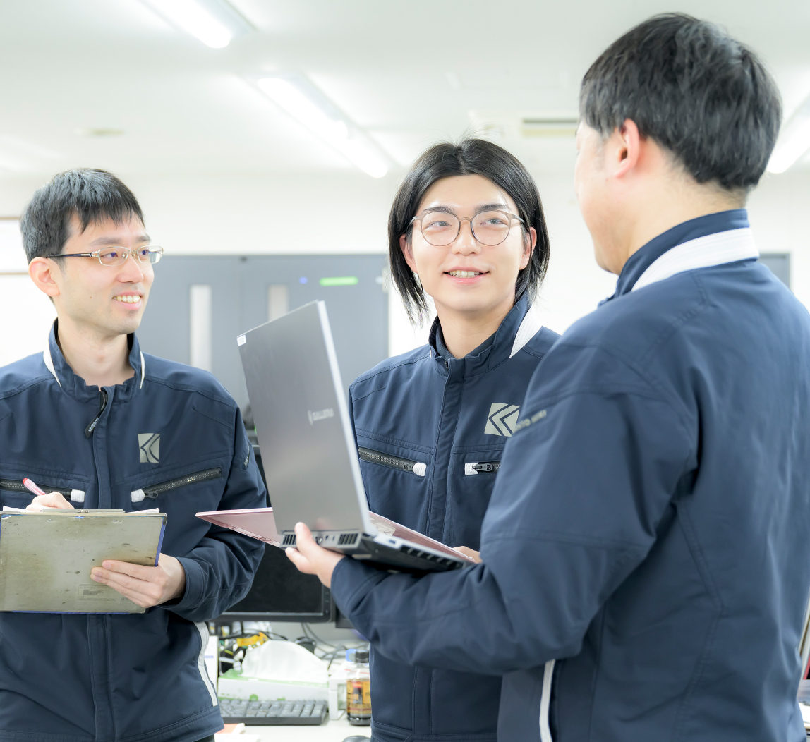 その中で、プロジェクトを成功に導くことができたのは、チームメンバーとのコミュニケーションを密にしたことにあります。定期的な打ち合わせや日々の相談を重ね、課題を共有しながら一つひとつ解決していきました。互いに意見を出し合い、より良い設計を追求することで、装置の完成度を高めていくことができました。関東精機のチーム力の高さを改めて感じたプロジェクトでした。